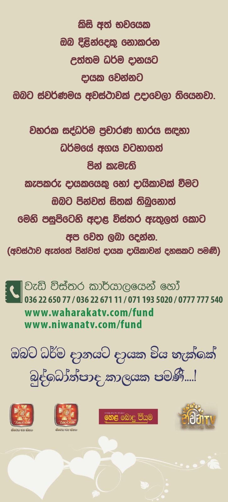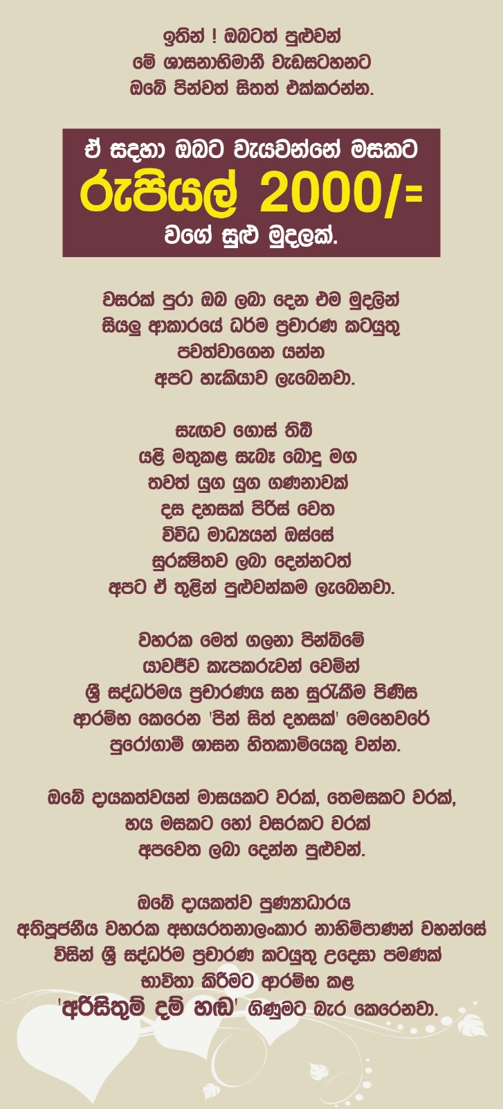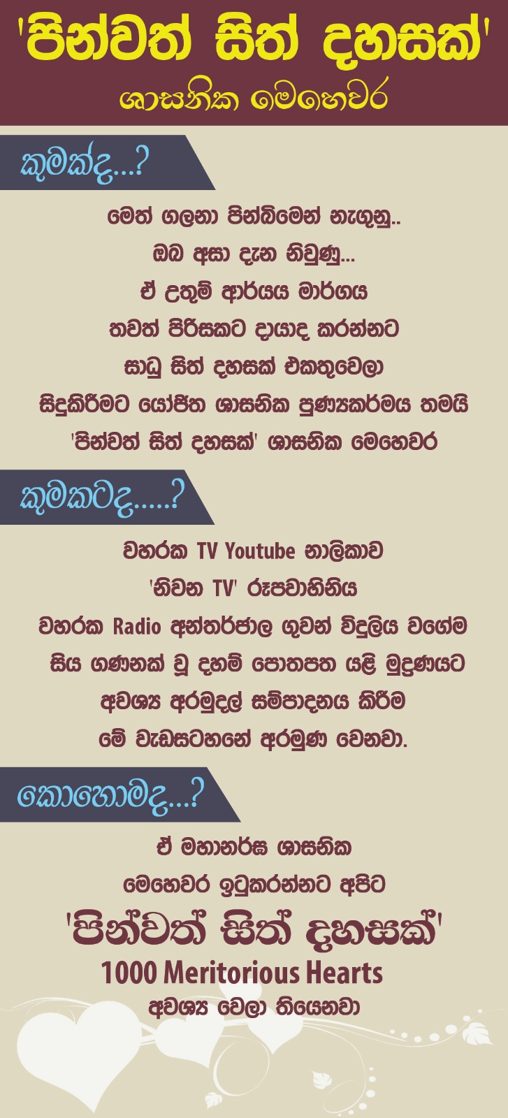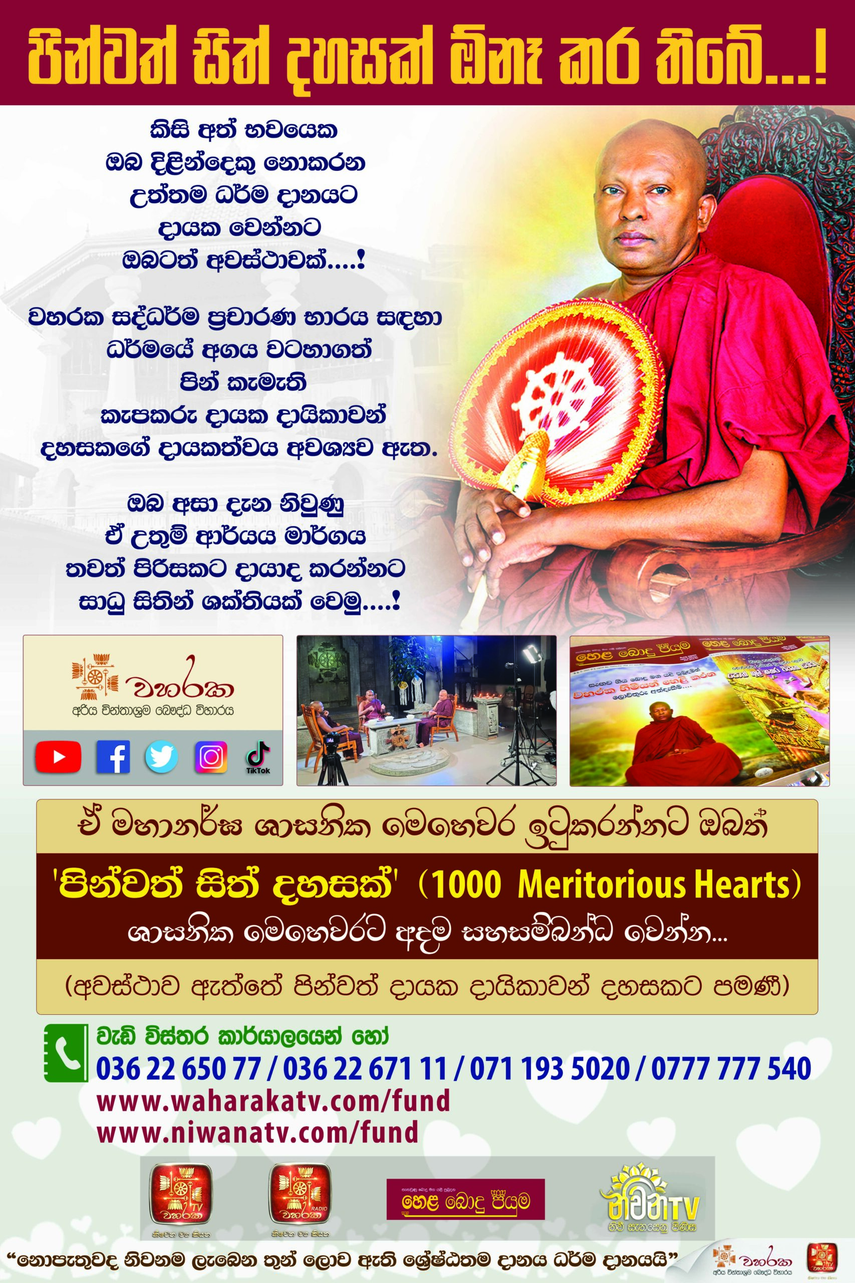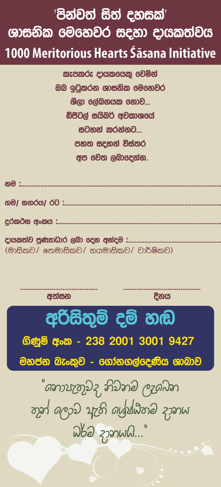 පින්වත් සිත් දහසක් ශාසනික මෙහෙවර සඳහා දායකත්වය